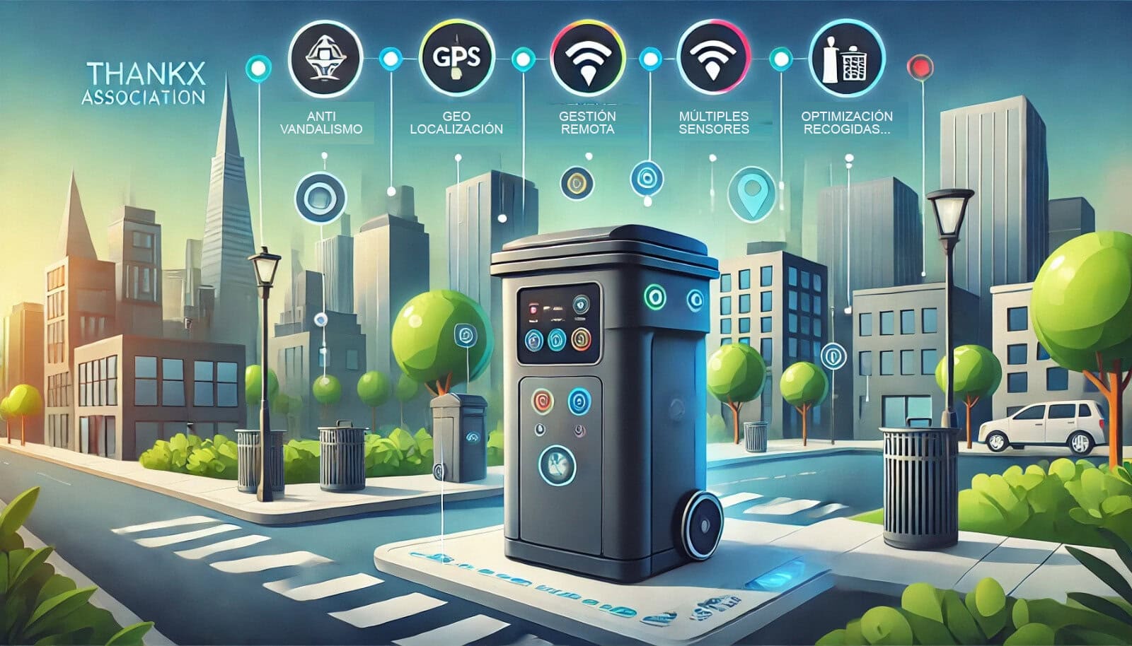 - El principal objetivo de Thankx Association con este proyecto es contribuir a un entorno urbano más limpio y seguro. Las características innovadoras de estos contenedores permitirán: